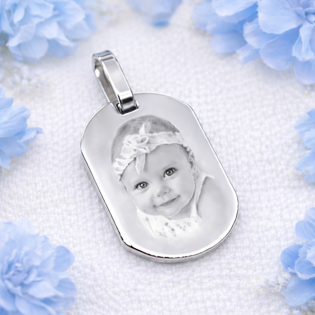 Grabado en un colgante de la foto de su elección incluida en el precio.